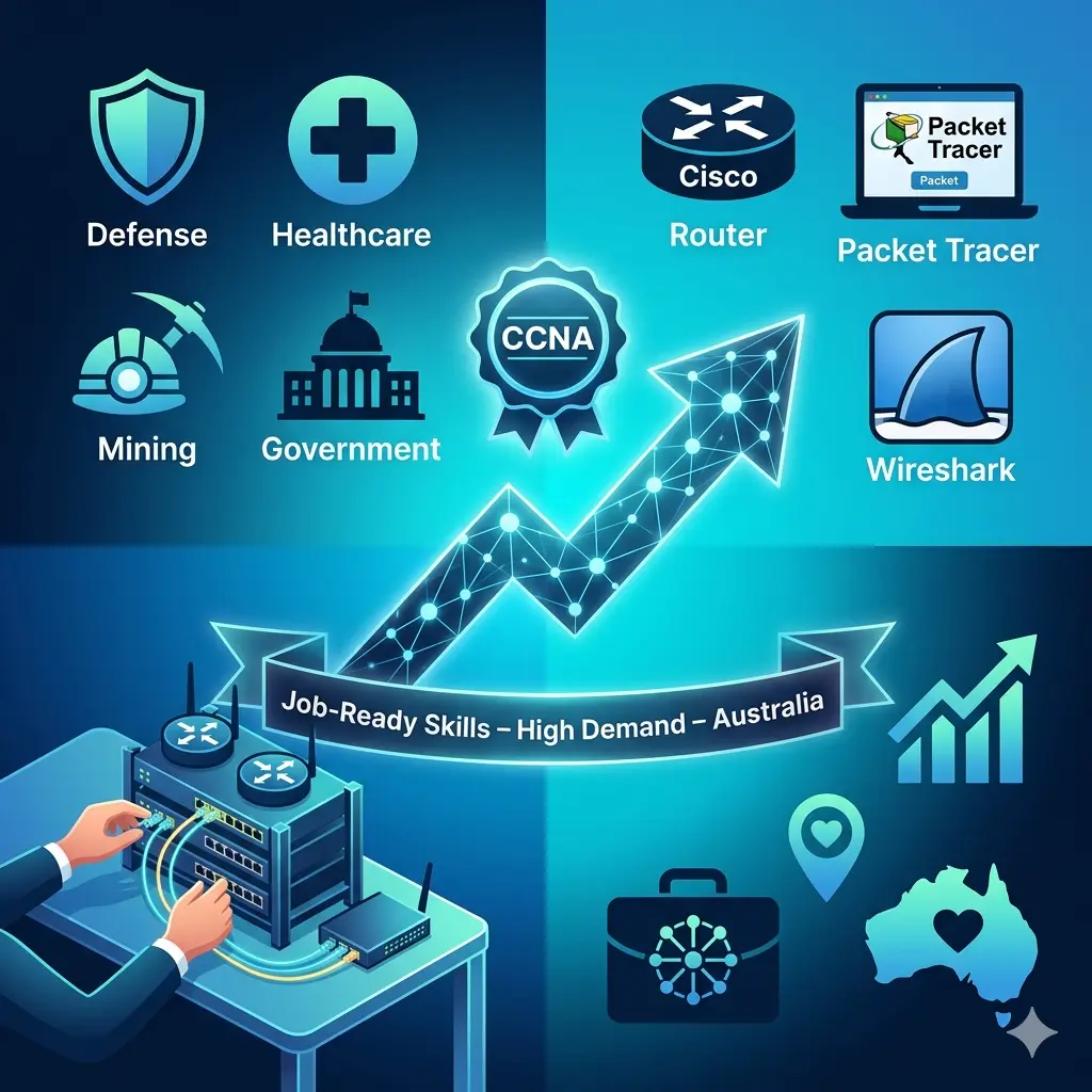 With practical hands‑on lab training, industry‑relevant tools (Cisco devices, Packet Tracer, Wireshark), and real‑world configuration scenarios, you can quickly transition into a high‑demand, well‑paid networking role and build long‑term career growth in Australia.